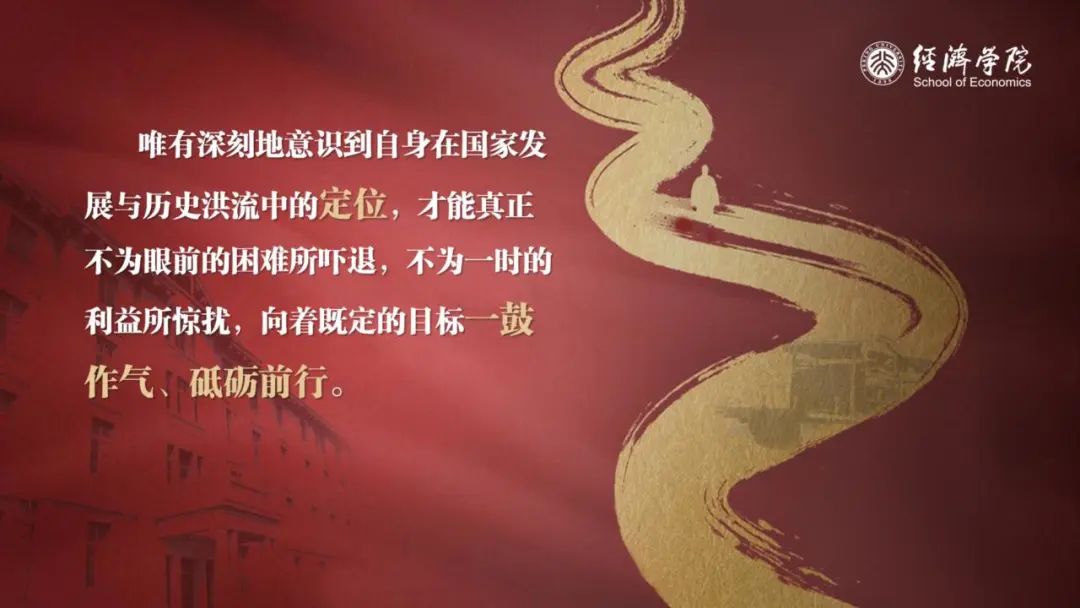 我想问在座的同学们,你们来到北大经院求学,目标是什么?在回答这个问题之前,我们不妨一同回顾那些穿越时空的答案。面对这个问题,少年时的周恩来总理回答说:“为中华之崛起而读书。”在陕北高原的梁家河,青年时的习近平总书记回答说:“为人民做实事。”你们可能会追问,这样的目标岂非太宏大、太遥远了?然而,唯有深刻地意识到自身在国家发展与历史洪流中的定位,才能真正不为眼前的困难所吓退,不为一时的利益所惊扰,向着既定的目标一鼓作气、砥砺前行。