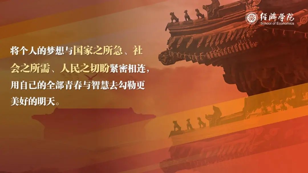 习近平总书记指出:“青春孕育无限希望,青年创造美好明天。一个民族只有寄望青春、永葆青春,才能兴旺发达。”从今天起,同学们在燕园的新生活就要展开了,希望你们在未来几年中砥砺耕耘、拔节生长、向阳而生,在北大、在经院留下一生中最为深刻的年轮!
