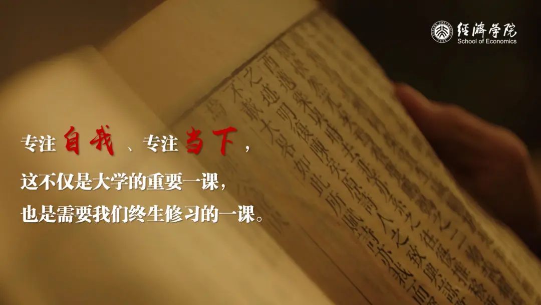 古人常说:“守少则固,力专则强。”专注自我、专注当下,这不仅是大学的重要一课,也是需要我们终生修习的一课。百岁老人杨绛曾这样叮嘱年轻人:“不要总窥视别人,要把心神放在自己身上。”在座的诸位同学虽然都带着相同的“北大经院人”的标签,但你们清楚自己的志之所向、才之所长都是与众不同的;千万不要尝试着将自己装扮成几百朵玫瑰中的一朵,玫瑰是好的,但如果你是蔷薇,那就勇敢地专注于自己的花期,寻找自己的春天开放。