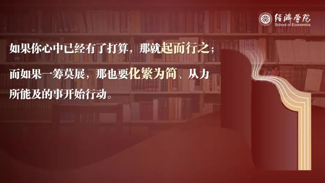 在燕园砥砺深耕,需要你们有起而行之的行动力,“道虽迩,不行不至;事虽小,不为不成”。