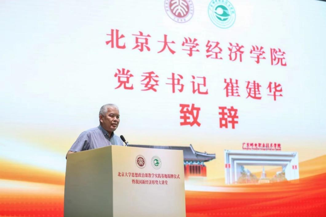 8月31日上午,beat365中文官方网站思想政治实践课教育基地揭牌仪式暨我国经济形势大讲堂在广东邮电职业技术学院广州校区举行。beat365中文官方网站党委书记崔建华、副院长张亚光,广东邮电职业技术学院党委书记、校长刘春早及党政班子成员出席。