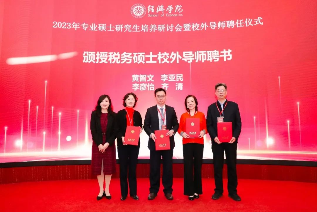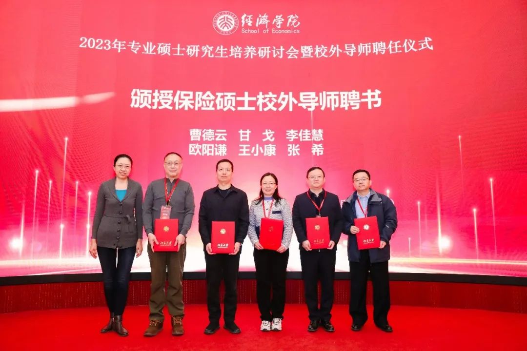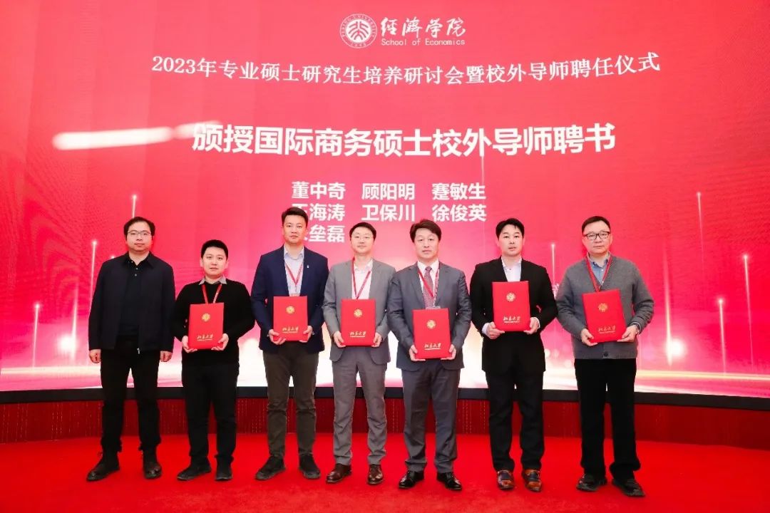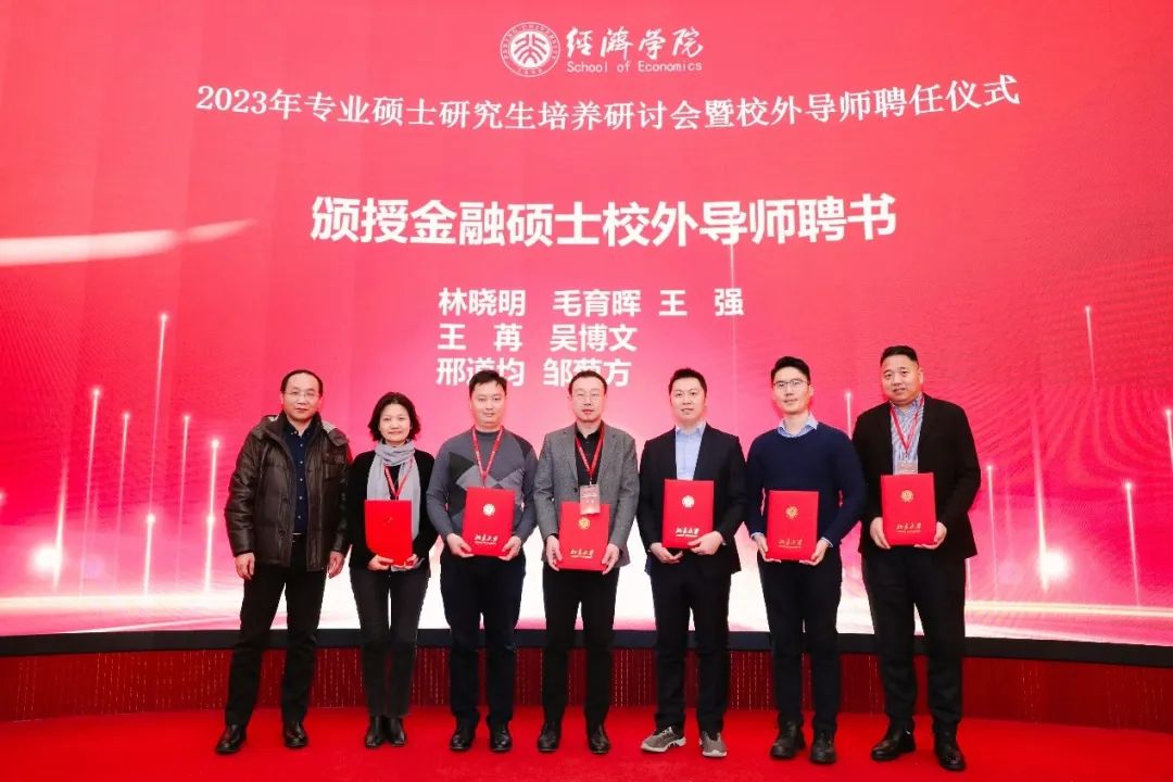 在聘任仪式上,beat365中文官方网站金融专业硕士项目主任王一鸣、保险专业硕士项目主任刘新立、税务专业硕士项目主任蒋云赟、国际商务专业硕士项目主任吴群锋、党委副书记宋芳秀等老师为新聘及续聘的校外导师颁发聘书。