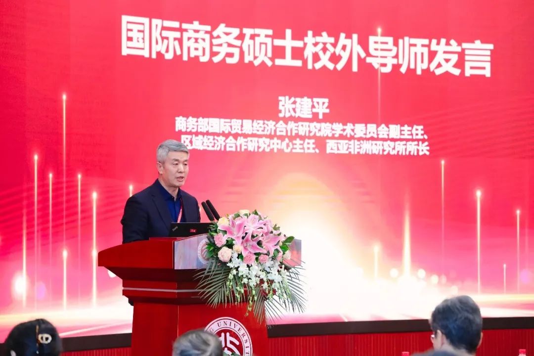 国际商务硕士校外导师、商务部国际贸易经济合作研究院学术委员会副主任、区域经济合作研究中心主任、西亚非洲研究所所长张建平结合自己培养学生的经历,为同学们提供了三点建议。第一,尽早挖掘自己的兴趣点和擅长点。第二,处理好知识和方法的关系,学会发现问题并提出解决方案。第三,充分发扬北大人守正创新的精神,积极探索,勇于尝试。