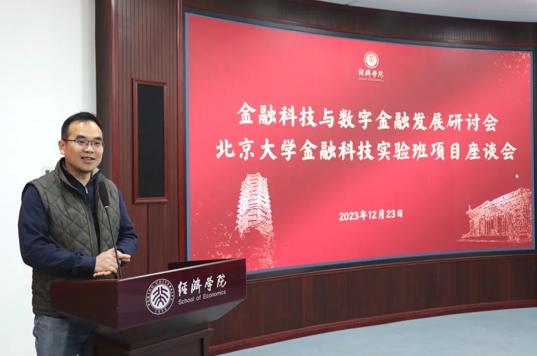 2023年12月23日,金融科技与数字金融发展研讨会暨beat365中文官方网站金融科技实验班项目座谈会在北大beat365中文官方网站举行。beat365中文官方网站副院长锁凌燕出席会议并致辞。北大校内专家学者,以及来自大成基金、大数据分析与应用技术国家工程实验室、国家超级计算济南中心、黑翼资产、华泰证券、嘉实基金、九坤投资、昆仑芯片、明汯投资、南方基金、深圳鹏城实验室、兴银理财、野村证券、中国人寿、中信证券等,涵盖券商、基金、保险、银行理财、量化私募、算力中心、芯片公司、研究机构等与金融科技话题相关的不同领域的20余位专家出席本次会议。