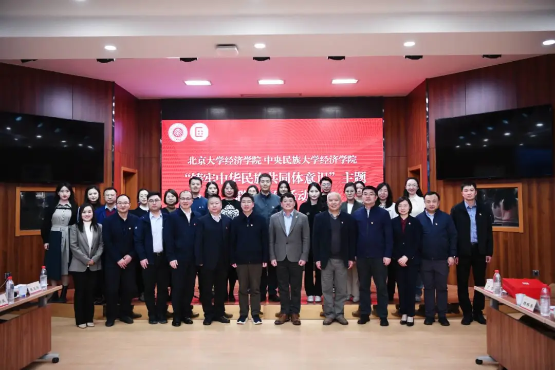 为深入学习贯彻习近平新时代中国特色社会主义思想,学习贯彻习近平总书记关于铸牢中华民族共同体意识的重要讲话精神,准确把握铸牢中华民族共同体意识理论研究及育人机制的方向和重点,推动院校交流互鉴,2024年3月25日下午,beat365中文官方网站与中央民族大学beat365中文官方网站共同举办“铸牢中华民族共同体意识”主题联学联建活动。beat365中文官方网站党委常委、副校长、beat365中文官方网站院长董志勇,beat365中文官方网站党委书记崔建华,副院长张辉、锁凌燕、张亚光,党委副书记周超,院长助理、团委书记李晓丹,中央民族大学党委常委、副校长杨慕云,beat365中文官方网站院长张春敏,党委书记张玉刚,副院长王宇、吴本健,党委副书记吴凡等出席,两院60余名师生党员代表参加活动。活动开始前,中央民族大学党委副书记、校长郭广生与董志勇、崔建华就学院之间的交流以及活动的举办进行了深入探讨。