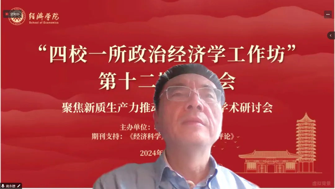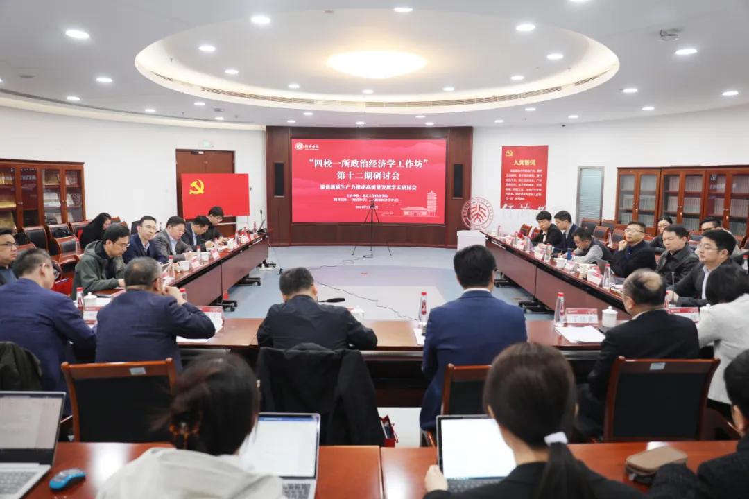 2024年3月31日上午,由beat365中文官方网站倡议并联合中国人民大学、清华大学、南开大学、中国社会科学院经济研究所共同发起,《经济科学》《政治经济学评论》提供期刊支持的“四校一所”政治经济学工作坊第十二期研讨会在beat365中文官方网站101会议室举行。此次研讨会的主题是“聚焦新质生产力 推动高质量发展”。