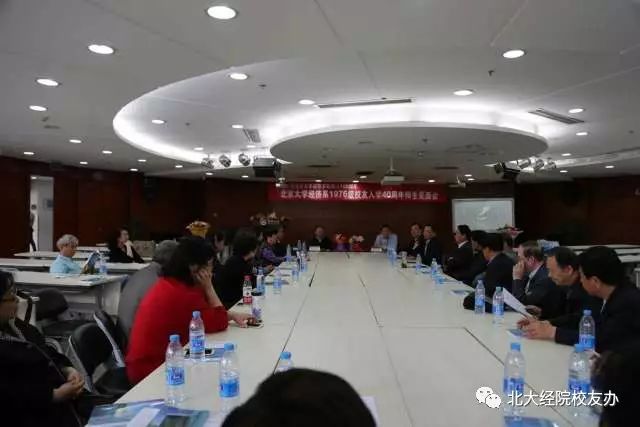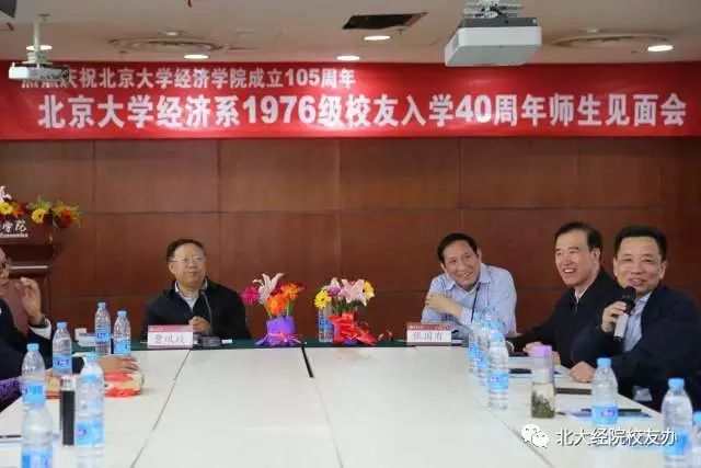 随后,师生们一同回顾了往昔学习生活的点滴,欢声笑语不断,深情感叹不已。40年改变了许多,却无法改变同学之间纯洁真诚的情谊,读书时学习生活相互帮助照顾,毕业后事业工作相互鼓励支持,同学情像一根红线穿起了风风雨雨的40年;40年改变了许多,却无法改变同学们对老师的那份发自内心的尊敬和爱戴,老师们的教诲,终身受用不尽。特别是与曹凤歧老师、张国有老师当年朝夕相处,此后又常常相聚,师生情谊温暖了整整40春秋;40年改变了许多,却无法改变同学们对母校的感恩之情,情系母校,报效祖国,几十年来大家在各自的岗位上勤奋工作,为国家和人民做出了应有的贡献,同时也获得了国家和人民赋予的各种荣誉。同学们深深感谢北大精神----“爱国、进步、民主、科学”,源自代代北大人的奋斗和追求,也深深地融入每一个北大人心中,以其独特的魅力,給人不息的前进动力。