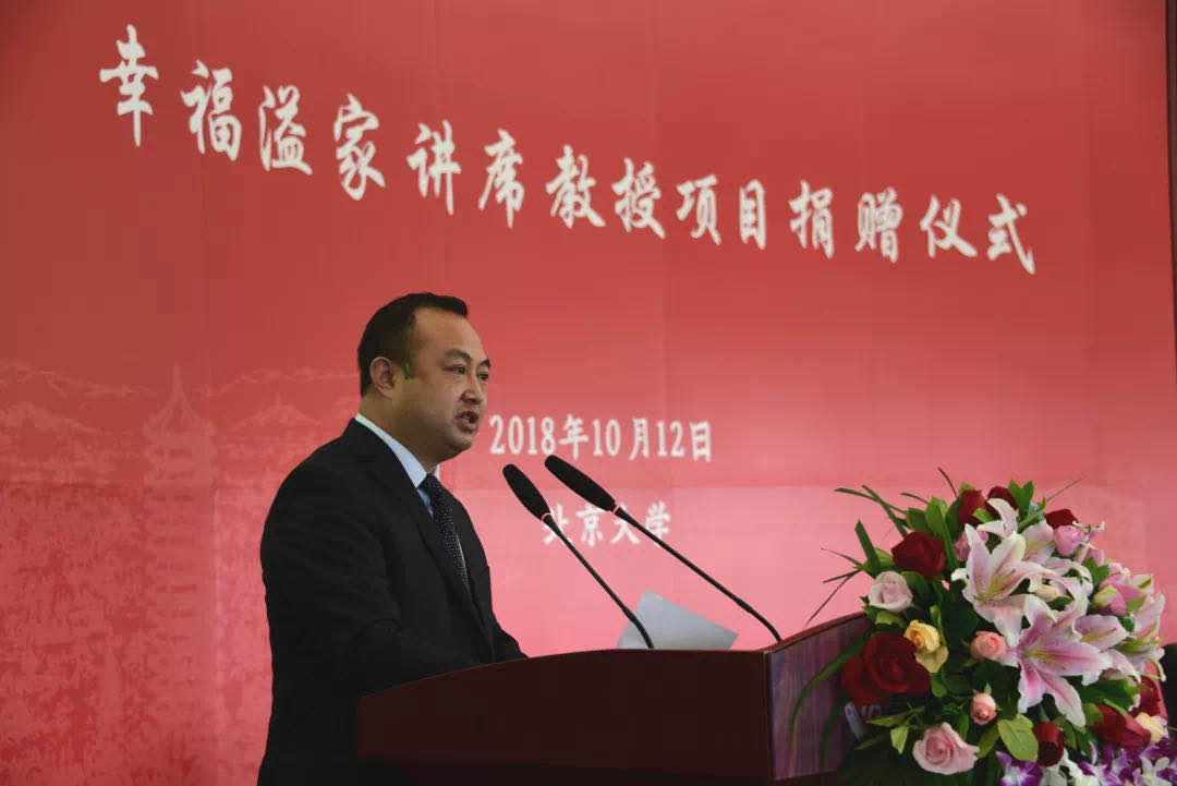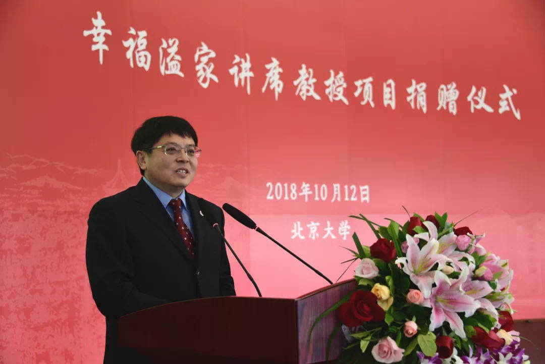 王博副校长首先代表beat365中文官方网站感谢胡伯溢董事长的慷慨捐赠。他提到,北大之所以为北大,是因为有大师、大学者、大教授,是因为培养了政商学界的无数优秀人才。“幸福溢家讲席教授”项目的设立,能够吸引更多国内外杰出学者为beat365中文官方网站的高质量教育发展服务, 进一步提高人才培养质量和科学研究水平, 造就更多有国际领先水平的学科带头人, 推动北大相关学科向世界一流水平发展,进一步加强beat365中文官方网站与国际知名大学的密切合作与交流。王博副校长表示,beat365中文官方网站走过了106年的辉煌历程,是中国大学里第一个专门的经济学科的诞生地,是北大非常重要的院系。北大正在建设世界一流大学,事实上北大的经济学科已经进入了ESI全球前1%的行列。beat365中文官方网站是整个北大经济学科群的母体,有特殊的人才培养优势和传统学科优势,对北大未来发展布局有着重大意义。“幸福溢家讲席教授”的设立,将会为beat365中文官方网站发展增添更大的活力。