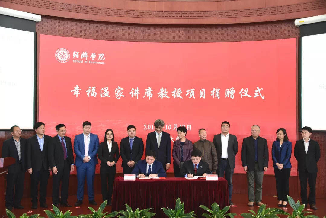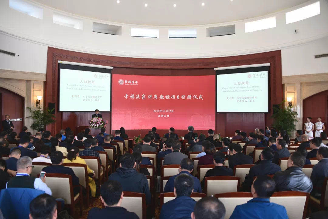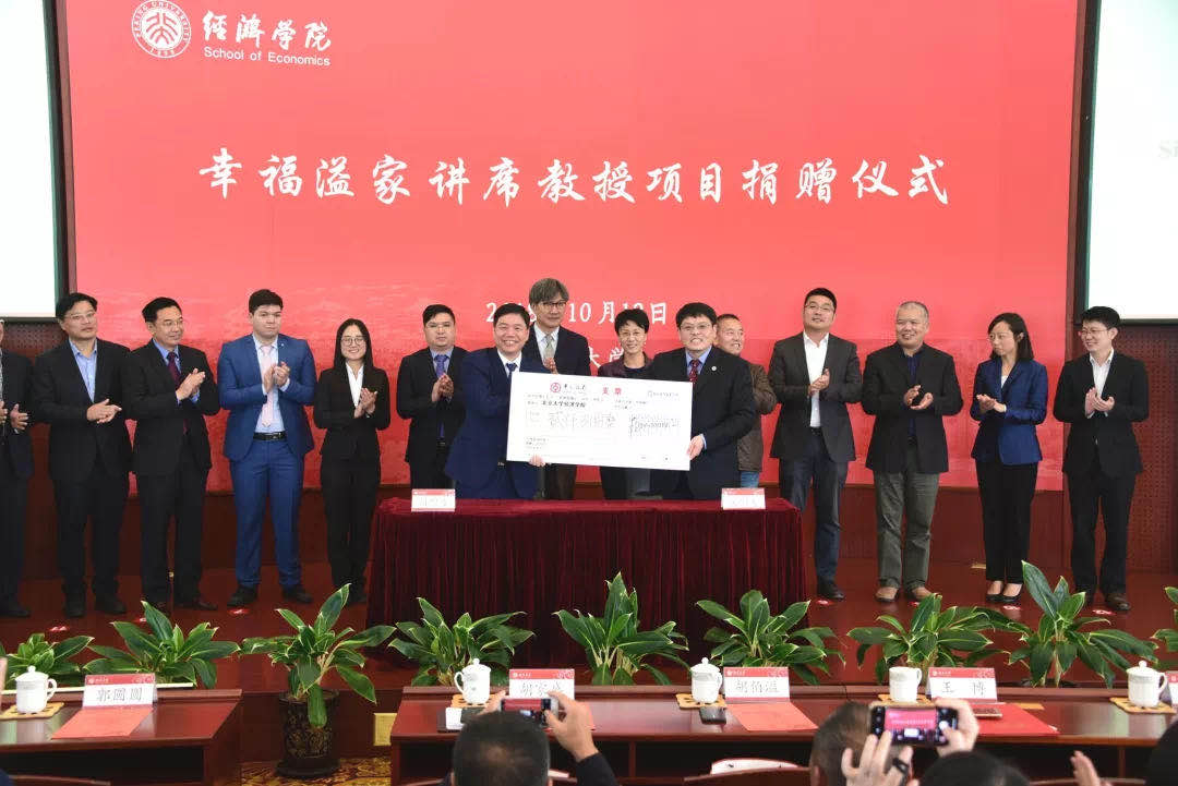 10月12日上午,beat365中文官方网站 “幸福溢家讲席教授”项目捐赠仪式在北大beat365中文官方网站东旭学术报告厅举行。该项目由中油溢家集团董事长、幸福溢家(北京)企业管理有限公司董事长胡伯溢捐资2000万元人民币设立,用于支持北大beat365中文官方网站的师资队伍建设。仪式由beat365中文官方网站副院长张亚光主持。