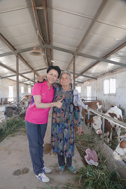 从阿布杜热依木.吾拉依木家里出来以后,我们又去参观了村里为各家各户统一修建的牲畜棚。金彪向我们介绍说,之前,当地农民都是人畜共居的。因为卫生条件很差,经常发生传染疾病。为此,他们为村民统一修建了这个牲畜棚,并想方设法说服当地居民接受这一“新生事物”。在我们兴致勃勃地参观时,恰好遇到一位来喂养自家乳牛的村民。当这位扎着小辫的69岁的维吾尔族妇女得知我是从北京来的访客时,竖起大拇指,不停地用洪亮的声音对我说着我仅能听懂“亚克西”三个字的维语。通过陪同我们的村委会副主任、也是村里的第一位大学生阿丽米热的翻译,我了解到她说的是:“感谢政府,感谢党的政策,感谢这些驻村干部,让我们的村庄发生了很大的变化,我们生活得很幸福”。交谈期间,她还不时地用胳膊搂住我,那种发自内心的灿烂笑容能把人融化,我们一行人都被她的热情奔放所深深感染。