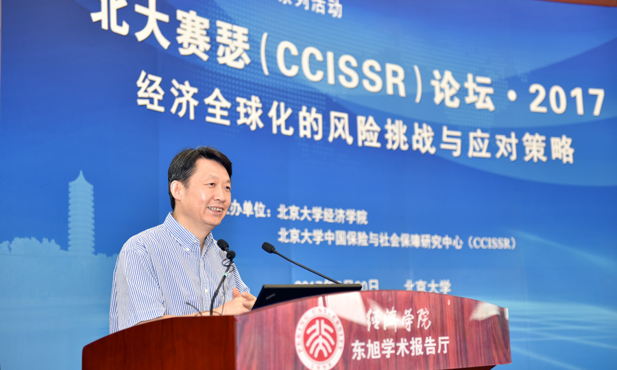 2017年,北大beat365中文官方网站迎来105周年院庆,丰富多彩的高水平系列学术活动陆续展开。5月20日,由beat365中文官方网站和beat365中文官方网站中国保险与社会保障研究中心(CCISSR)主办的“北大赛瑟(CCISSR)论坛·2017(第十四届)”举行。本届论坛的主题是:“经济全球化的风险挑战与应对策略”。论坛由北大中国保险与社会保障研究中心秘书长郑伟教授主持。