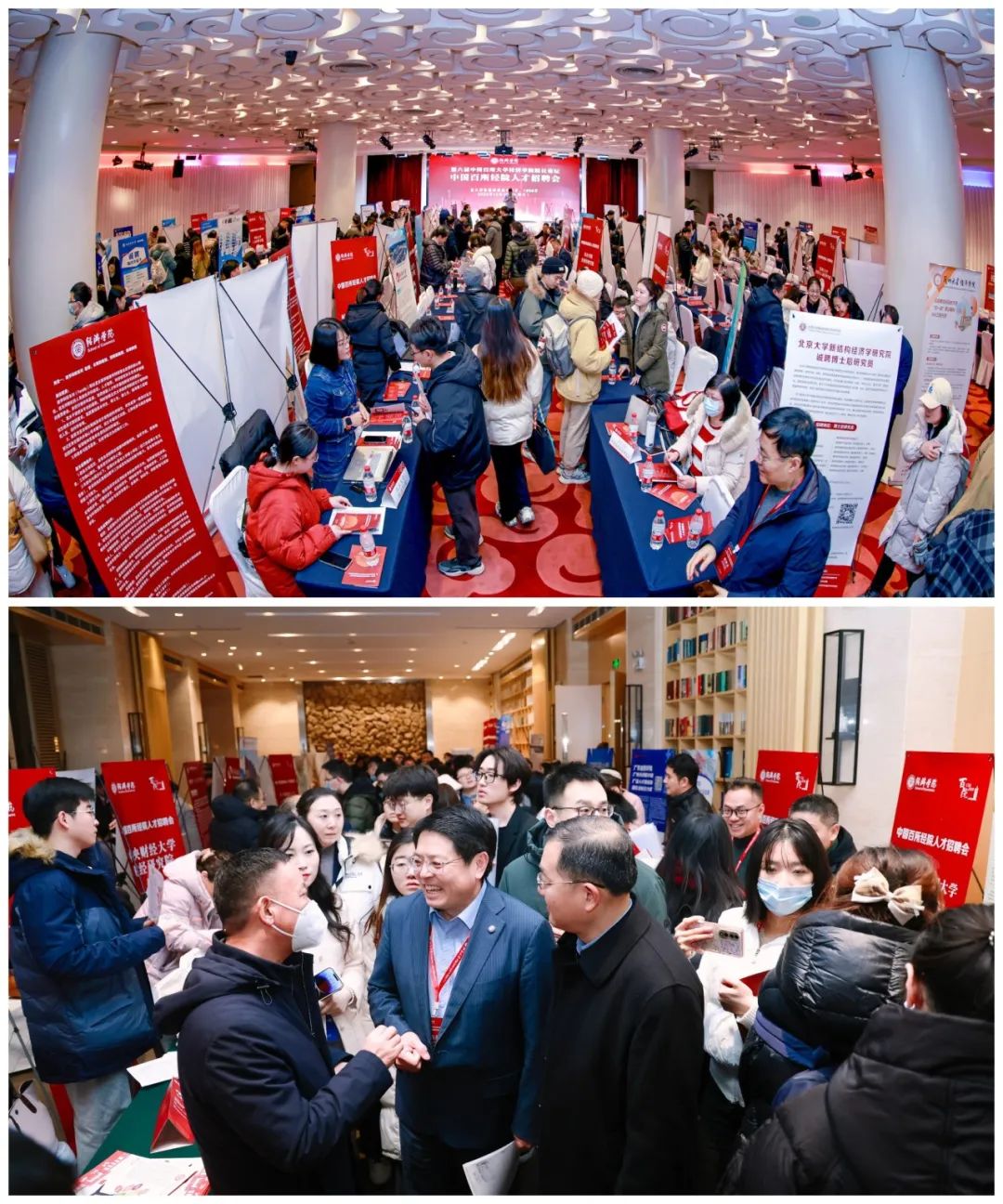 窗外是数九寒冬,招聘会现场却是融融暖意。只要你踏进招聘会现场,看着人潮涌动,立刻会感觉暖意扑面。这里充满着期待与欣喜,现场摊位前,我们能听到应聘者和招聘院长聊起自己的研究方向,畅谈自己的学术规划;这里充满着细致与认真,我们能看到招聘方院长和老师眼中惜才的目光,他们认真聆听应聘者的陈述,仔细翻阅资料,频频点头认可,他们并不急于结束对话,而是与之耐心探讨,共同规划未来。