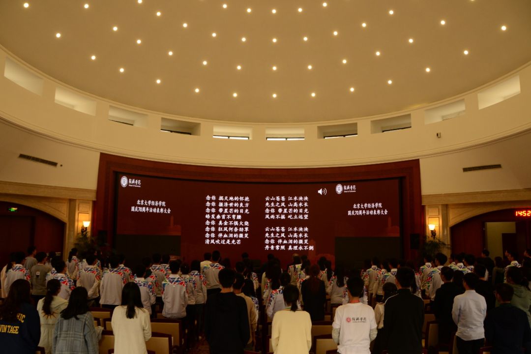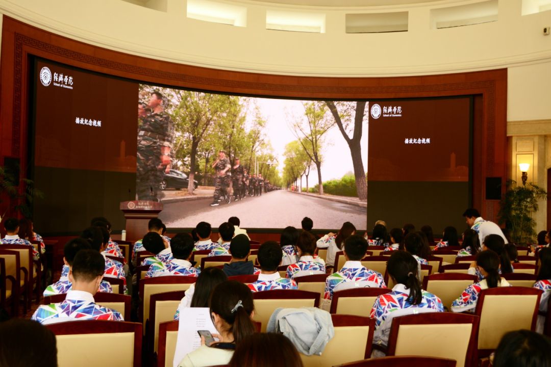 表彰大会以一部精心制作的回顾视频拉开帷幕。视频回顾了国庆70周年活动启动以来经院人的训练生活,带领师生重温那段同甘共苦、不懈奋斗的时光。随后,全场合唱《同心共筑中国梦》。在这熟悉的的旋律中,紧张有序的组织训练、披星戴月的彩排、以及长安街上的完美表现,仿佛重新浮现在师生眼前。