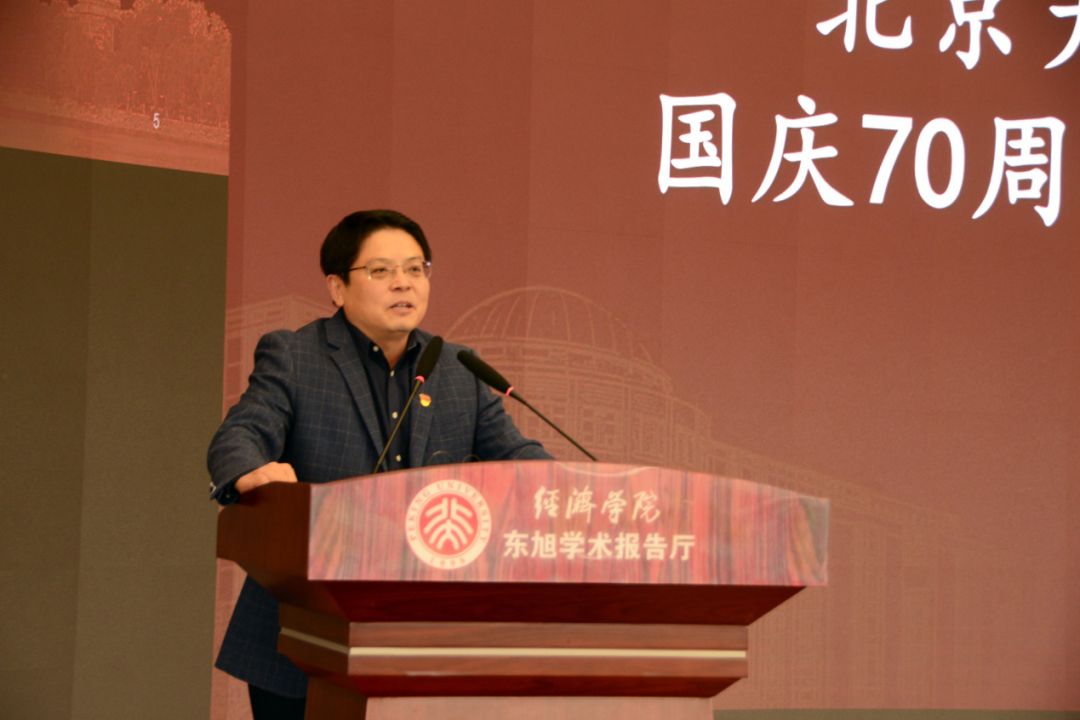 董志勇老师首先致辞。他表示,通过国庆70周年庆祝活动,师生们培养了深厚情谊。岁月如流,这次重大活动是经院人一生的记忆。他祝贺大家圆满完成任务,并祝愿大家学习进步,一切顺利。董志勇老师的讲话亲切感人,一言一语都传递出学院对师生的关爱。