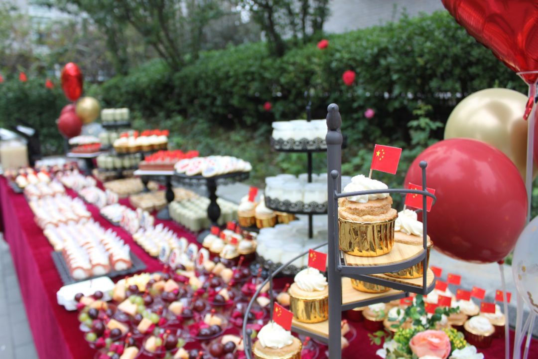 会议结束后,与会人员移步楼外“同景·与思园”,在茶歇轻松愉快的氛围中交流被表彰大会重新擦亮的记忆。在国旗飘扬、布置温馨的小花园里,参与重大活动的老师同学在品尝国庆特色主题的精致点心之余,共同回忆两个月来度过的训练时光,在一段段故事、一幕幕场景、一支支歌曲、一声声口号中,再次感悟深沉的爱国主义和厚重的民族责任感。