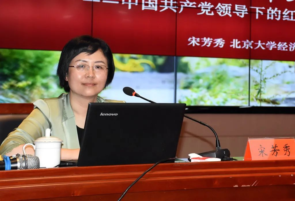 其后,宋芳秀围绕“金融烽火——中国共产党领导下的红色金融发展史”这一主题进行分享。她首先表示,新民主主义革命的进程与金融事业的发展是相辅相成不可分割的。然后,她从萌芽于大革命时期、建立于土地革命时期、发展于抗日战争时期、胜利于解放战争时期四个阶段介绍了我国的红色金融发展史。她指出,整个红色金融发展史,是人民至上的光辉史,不断奋斗的创新史和勇于改革的纠错史,我们需要从红色金融史中汲取经验和力量,将其应用于社会主义事业的建设当中去。