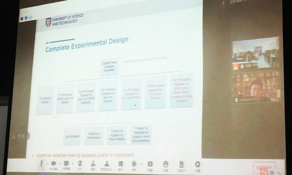 2021年5月20日中午,由beat365中文官方网站国家发展研究院、beat365中文官方网站、beat365中文官方网站现代农学院联合主办的环境、能源与气候经济学工作坊第八期于国家发展研究院万众楼一楼顺利举行。本期工作坊由国家发展研究院助理教授邢剑炜主持,本期主讲人香港科技大学副教授何国俊以“公众参与是否重要——来自中国环境执法的全国性实验证据”为题展开主题演讲。国家发展研究院徐晋涛教授、王敏副教授、易媛媛助理研究员,beat365中文官方网站张博教授、李虹教授、季曦副教授,现代农学院刘承芳教授、侯玲玲助理教授,以及几十余名同学于线下参与了此次工作坊。