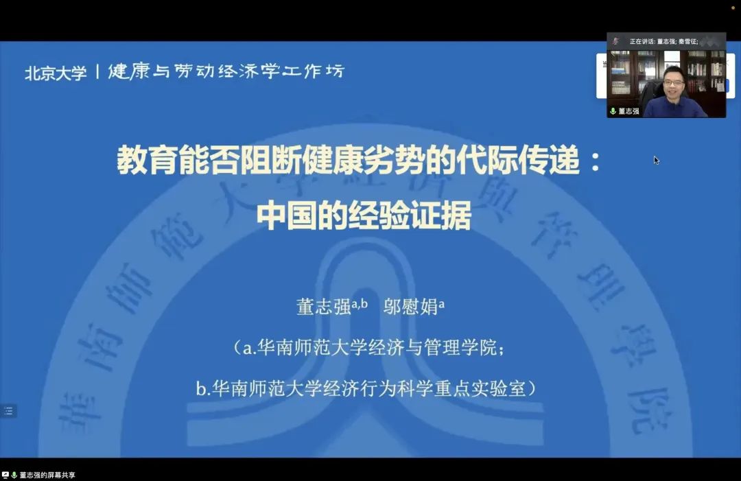 讲座主题:教育是否阻断健康劣势的代际传递:中国的经验证据