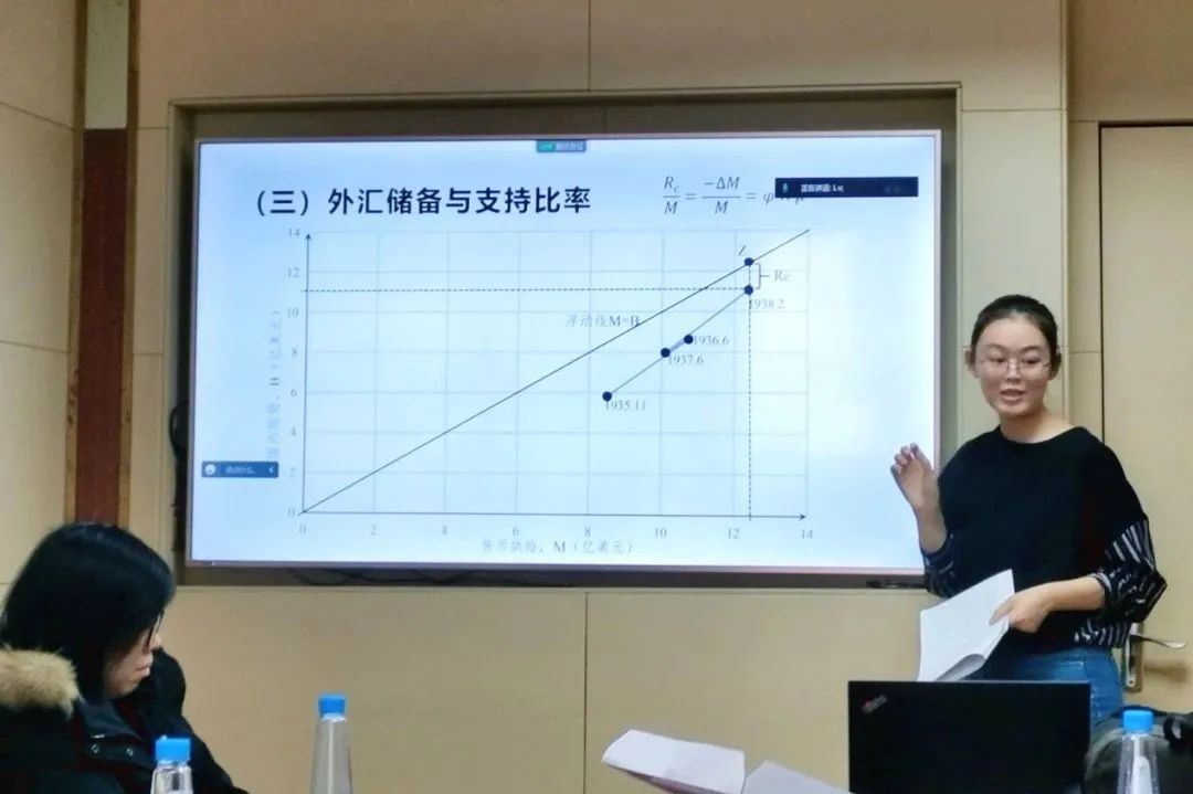 首先,徐之茵作报告。基于民国《中央银行月报》等第一手资料记载的中国汇率、利率、价格及货币发行月度数据,她与管汉晖、陈仪研究了20世纪30-40年代固定汇率的运行与崩溃。研究发现,固定汇率时期价格基本稳定,利率平价得以实现,起到了名义锚的作用;以美国为基准国计算利率风险溢价,发现固定汇率制度确立之初降低了货币风险,1939年汇率危机则使货币风险再次上升;两次汇率危机均发生在储备数量与支持比率最低的时期,战后的财政赤字货币化与信贷扩张是储备损失的主要推动因素。报告过程中,与会老师提出如加强研究的经济学含义、探究黑市汇率的存在是否反映出日军封锁下仍有资本流动、考察汇率与当时战争胜算的关系等建议。