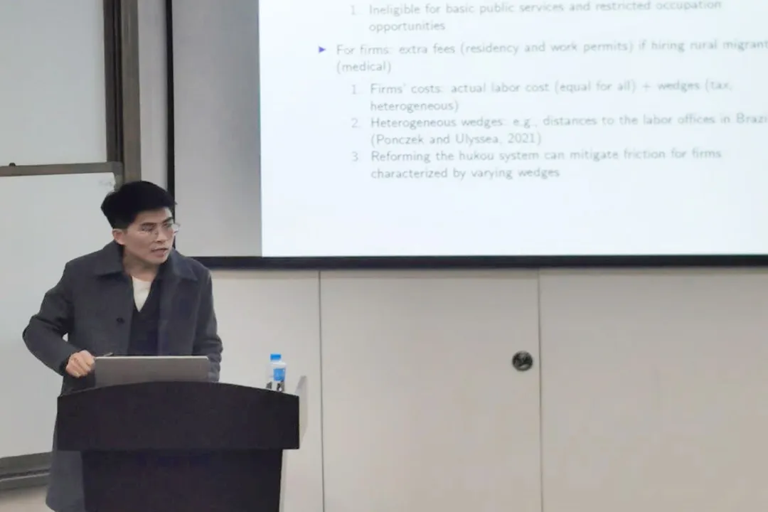 周康汇报的研究深入分析了21世纪初中国户籍制度改革对劳动力配置的影响,发现户籍制度的放宽极大促进了劳动力的合理流动和经济的整体生产力提升。21世纪初,中国政府启动了一系列户籍制度改革,目标是减少城乡之间的迁移壁垒,通过为农村迁移工提供当地城市居民权来实现这一目标。这一政策的实施旨在解决长期存在的城乡分割问题,促进劳动力资源的优化配置。
