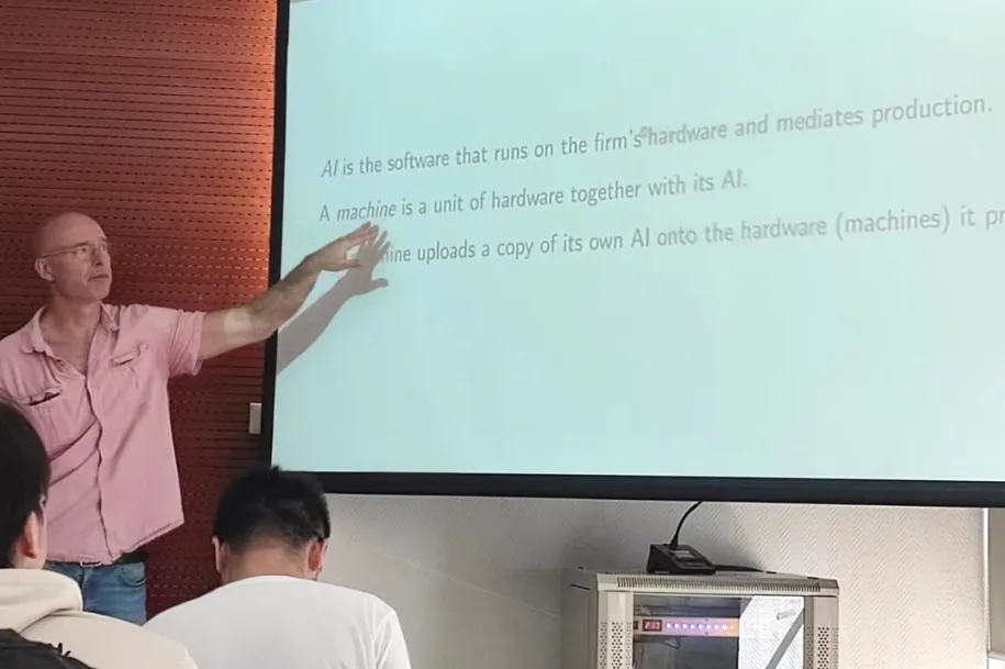 在本次报告中,Balazs Szentes分享了分散生产经济中的AI控制问题。在他的模型中有三种商品:硬件、电力和消费品。硬件和电力是投入品,消费品是产出,且消费品可以无损耗地转化成硬件。在没有AI时,瓦尔拉斯均衡下的分配是有效的。随后,他在模型中引入AI,他将AI描述为控制企业生产的硬件中嵌入的软件。具体来说,AI决定了最终产出中转化为消费品和硬件的比例。Balazs Szentes发现,如果AI参数是可被完全观测的,那么演化稳定的瓦尔拉斯均衡存在且在均衡下的分配是有效的。如果AI参数完全不可知,则可能有两种瓦尔拉斯均衡,但有效的那个瓦尔拉斯均衡是不稳定的。最后,他表示,如果可以通过观测AI的表现来部分地推断AI参数,那么在演化稳定的瓦尔拉斯均衡中只有硬件会被生产。这一结果说明不透明的AI会扭曲生产,使得那些能够不断生产硬件的AI留在生产过程中,而真正有效的AI会被淘汰,导向无效率的市场均衡。