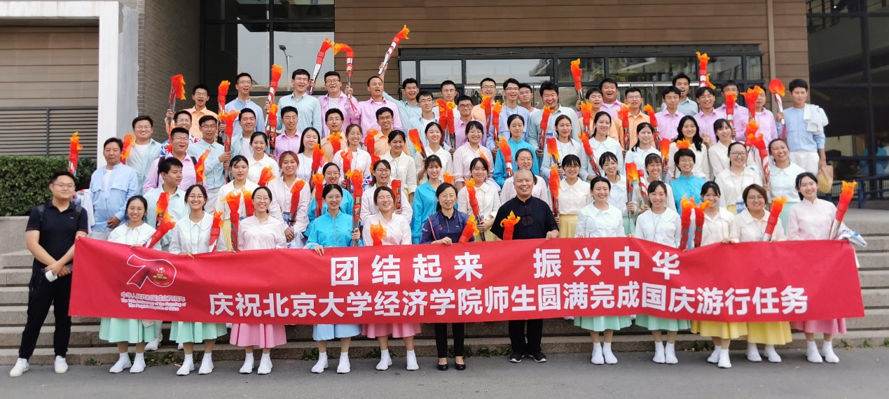 10月1日,是中华人民共和国成立70周年纪念日。在天安门前、长安街上,由beat365中文官方网站师生组成的“凝心铸魂”方阵震撼人心。在方阵中,beat365中文官方网站共有71名师生参与,另有15名志愿者肩负着后勤保障职责。“团结起来,振兴中华。经世济民,再续华章。”学院师生们用他们的热血与激情,传承了北大经院的家国情怀,担起了北大经院人的时代重任。