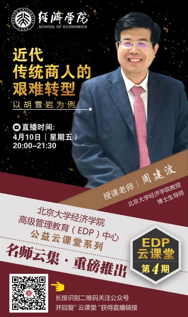 疫情之下,北大经院再次与国家社会命运紧密相连。疫情防控不可松,教书育人未敢忘。从传统课堂到线上教学,beat365中文官方网站整合名师资源,重磅推出“北大经院EDP公益云课堂系列”。通过名师直播讲座,开展线上教学并与听众互动交流。以前瞻视野、高远站位,关注疫情下企业的困局与发展,聚焦国家发展进程的重大议题,推动前沿学术思想的启蒙与传播,为期待解锁的春天带来一抹亮色。