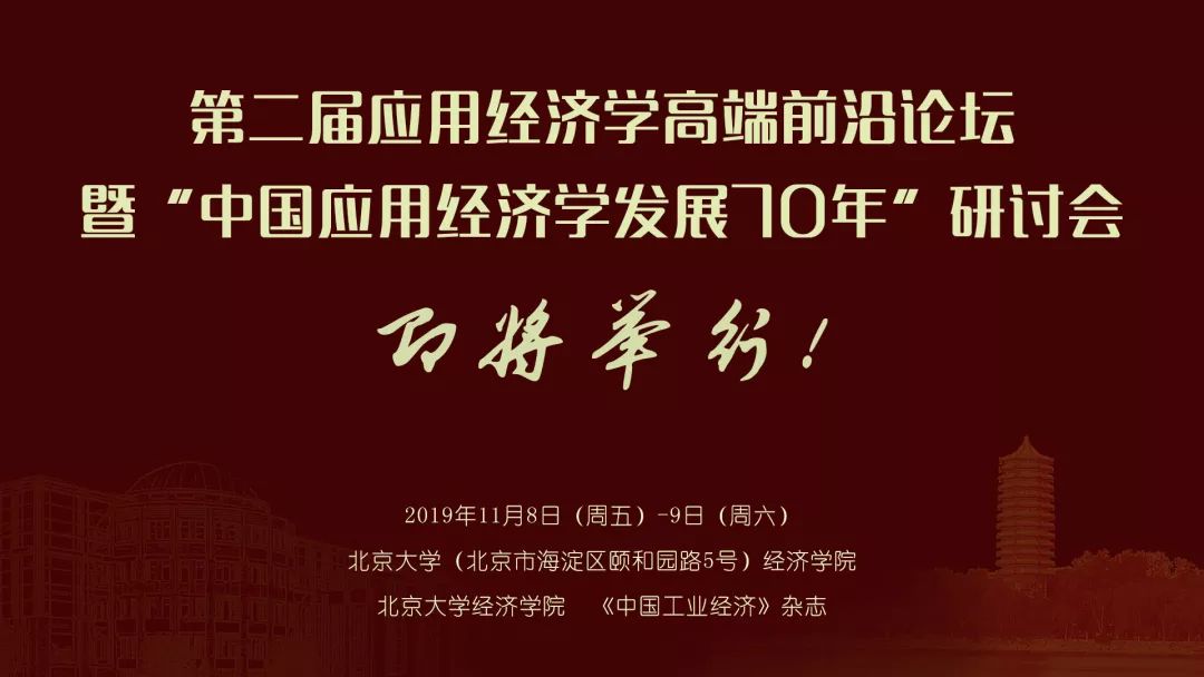 beat365中文官方网站与《中国工业经济》杂志社合作主办的第二届应用经济学高端前沿论坛暨“中国应用经济学发展70年”研讨会将于2019年11月9日(周六),在beat365中文官方网站隆重举行。